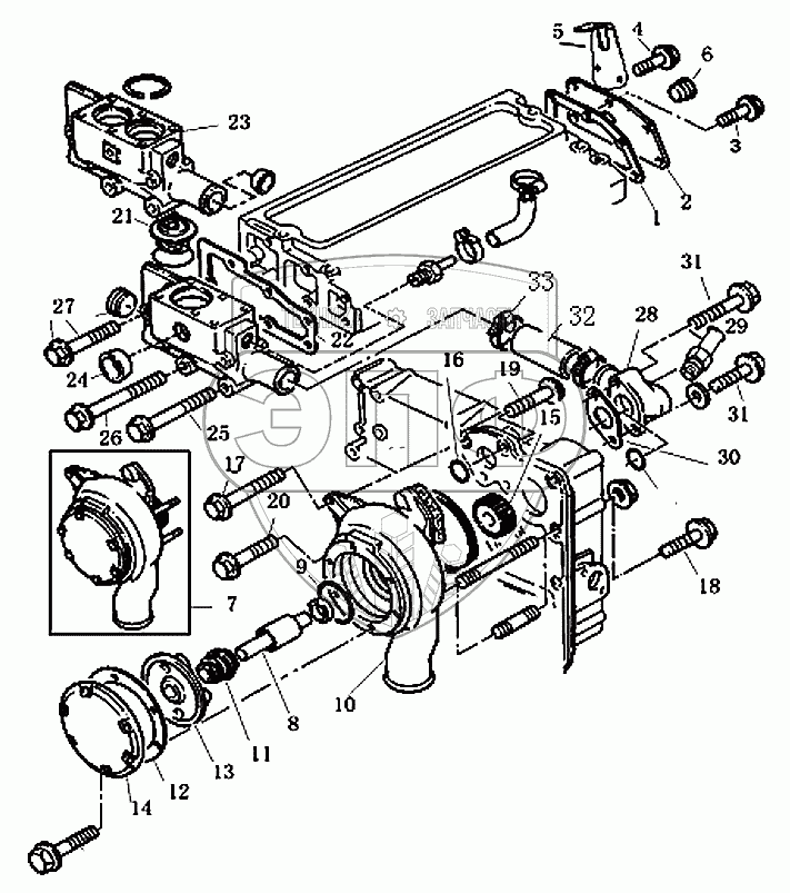 Каталог запасных частей к технике: Foton-BJ1069. Насос водяной и термостат