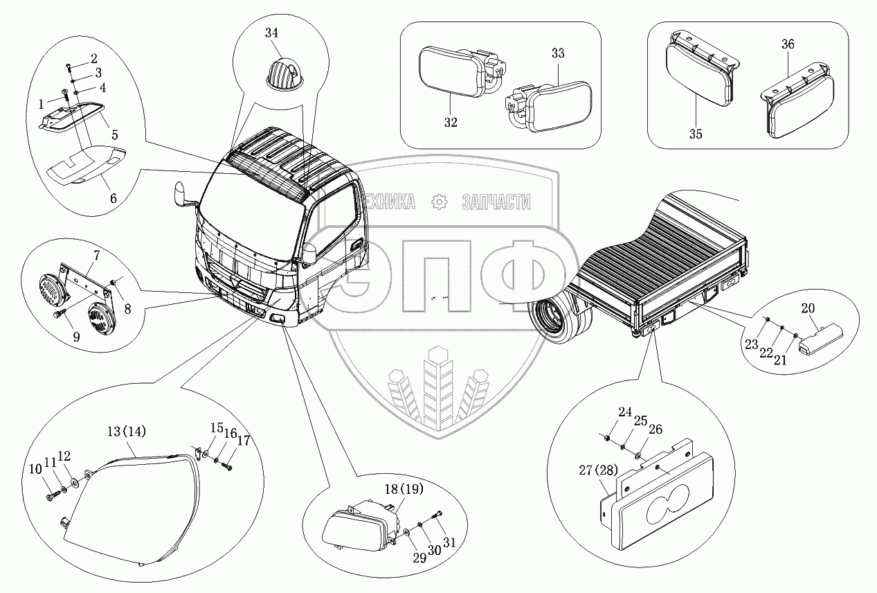 Каталог запасных частей к технике: Foton-BJ1069. Система освещения