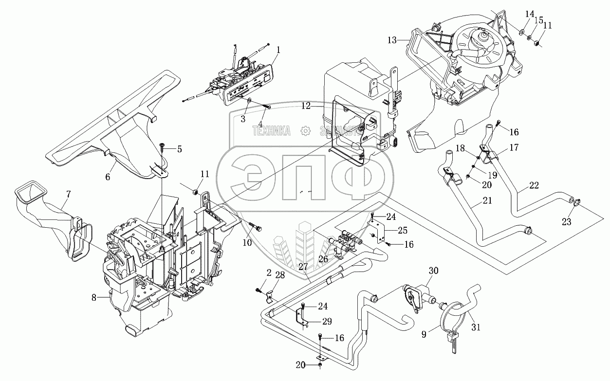 Каталог запасных частей к технике: Foton-BJ1069. Система отопления