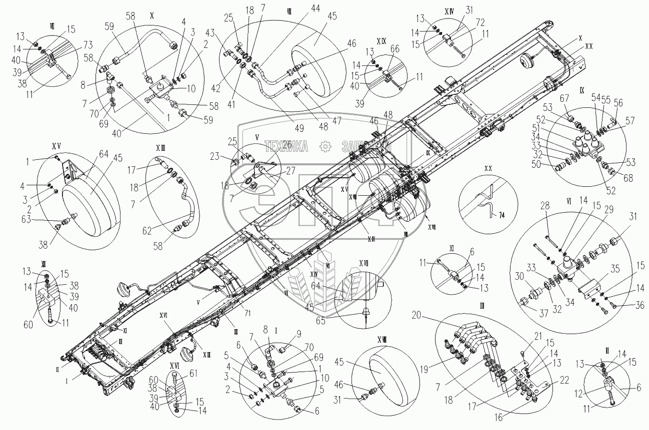 Каталог запасных частей к технике: Foton-BJ1069. Трубопроводы тормозной системы