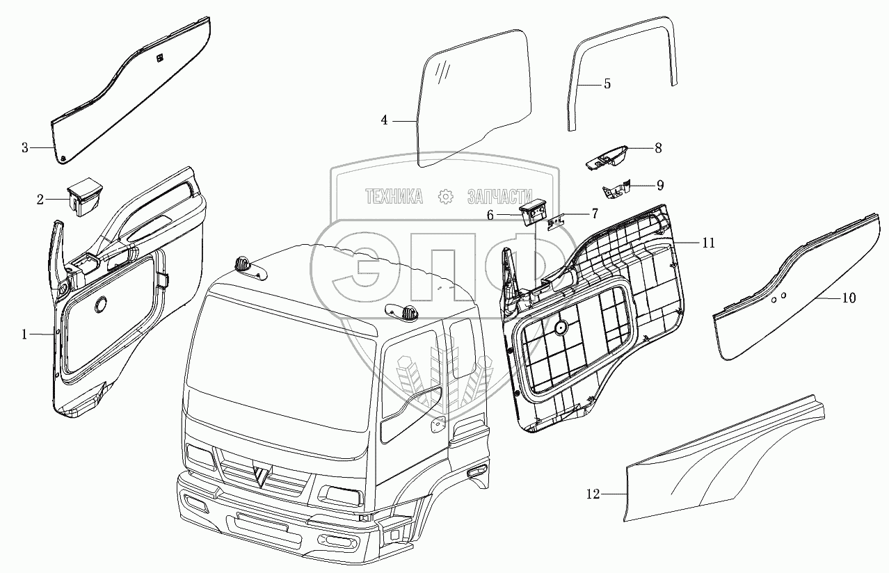 Каталог запасных частей к технике: Foton-BJ1099. Двери