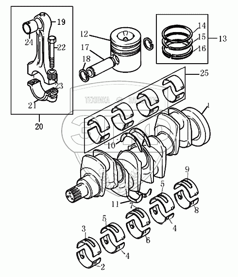 Каталог запасных частей к технике: Foton-BJ1099. Коленчатый вал, поршень, шатун