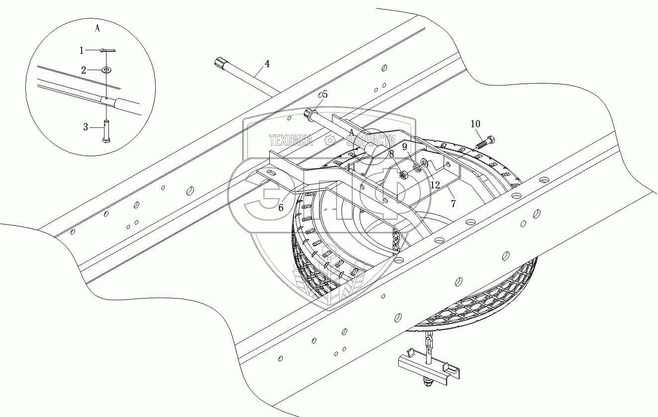 Каталог запасных частей к технике: Foton-BJ1099. Подъемное устройство запасного колеса