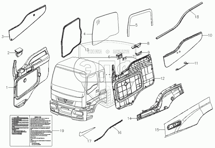 Каталог запасных частей к технике: Foton-BJ3251DLPJB. Арматура двери