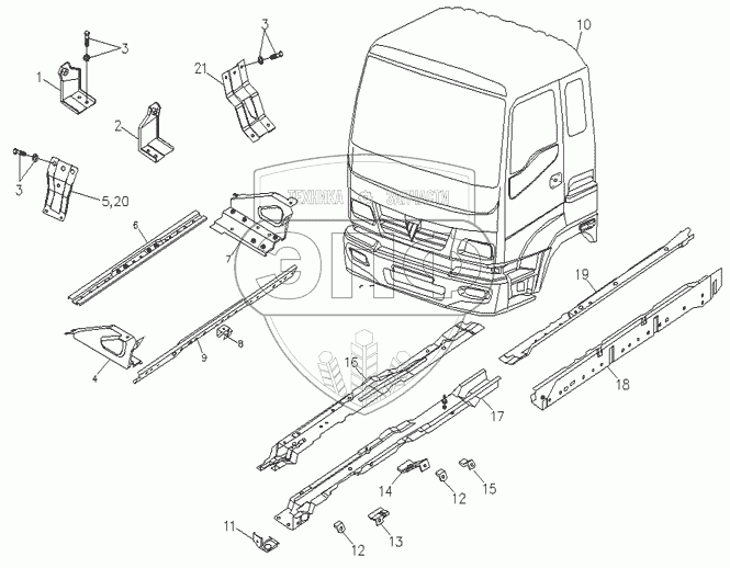 Каталог запасных частей к технике: Foton-BJ3251DLPJB. Кабина автомобиля