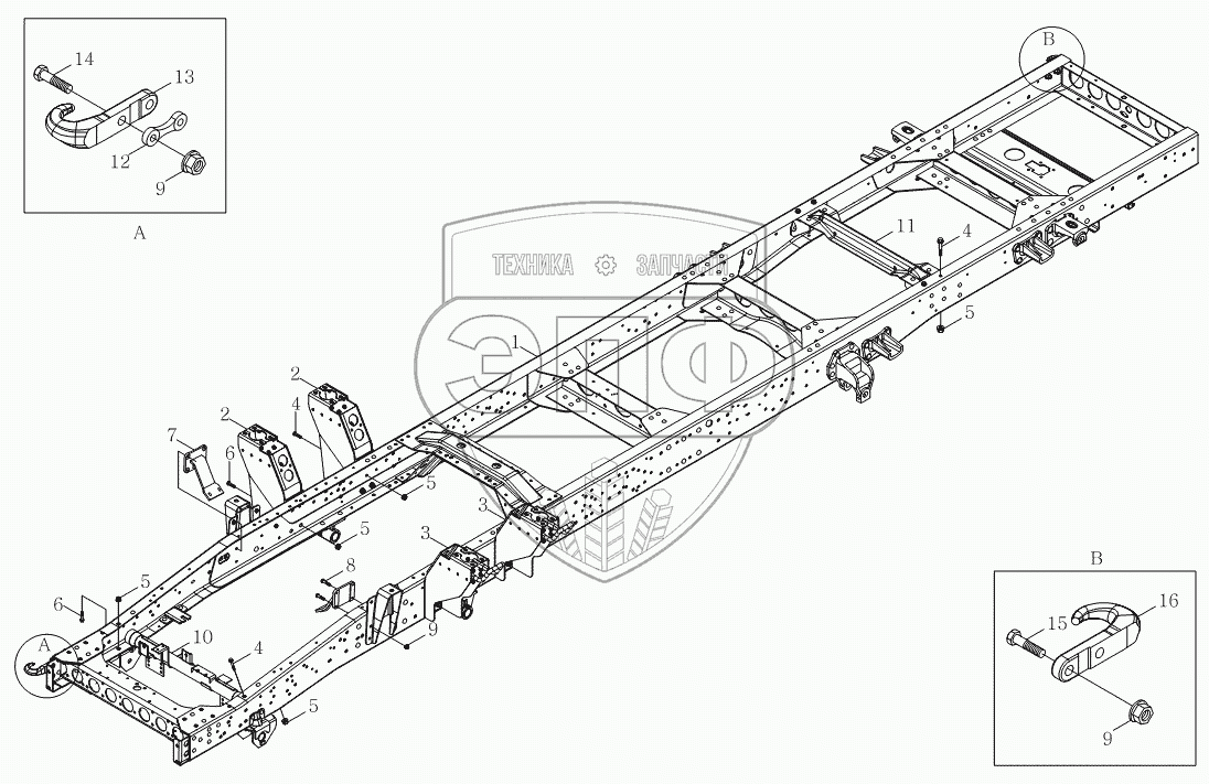 Каталог запасных частей к технике: Foton Оllin Express I. 1S10592800116, 1S10592800117 Рама