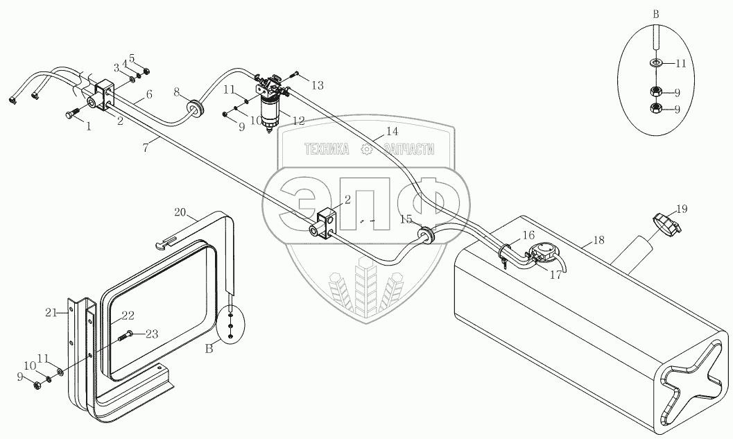 Каталог запасных частей к технике: Foton Оllin Express I. 1S10691100107 Топливная система