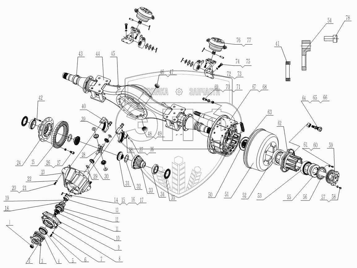 Каталог запасных частей к технике: Foton Оllin Express I. 1S10692400115 Задний мост