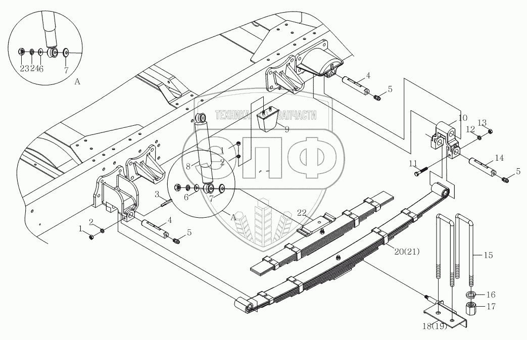 Каталог запасных частей к технике: Foton Оllin Express I. 1S10892950102 Задняя подвеска