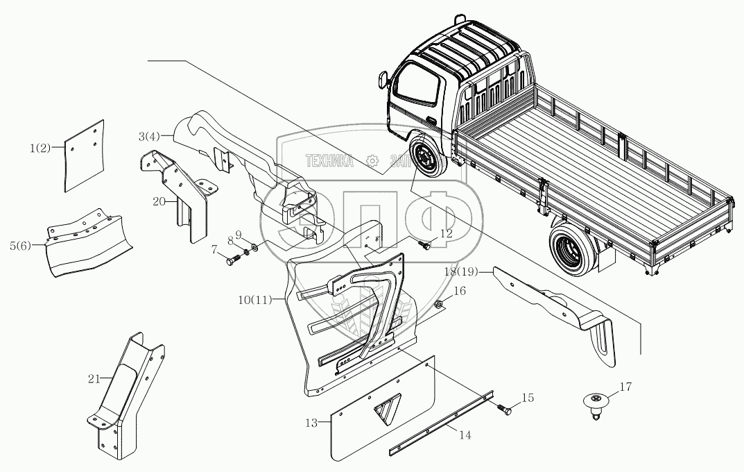 Каталог запасных частей к технике: Foton Оllin Express I. 1SB2008430102 Брызговик колеса