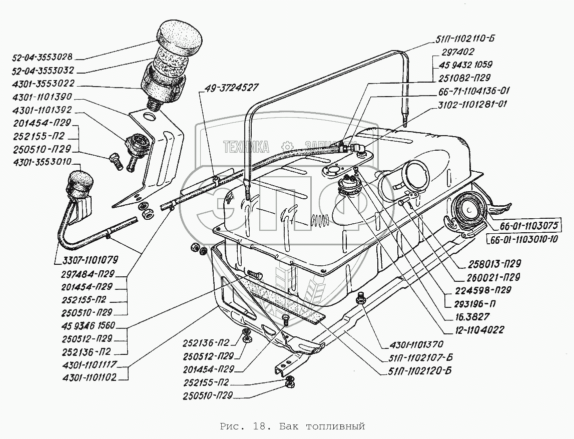 Каталог запасных частей к технике: ГАЗ-3306. Бак топливный