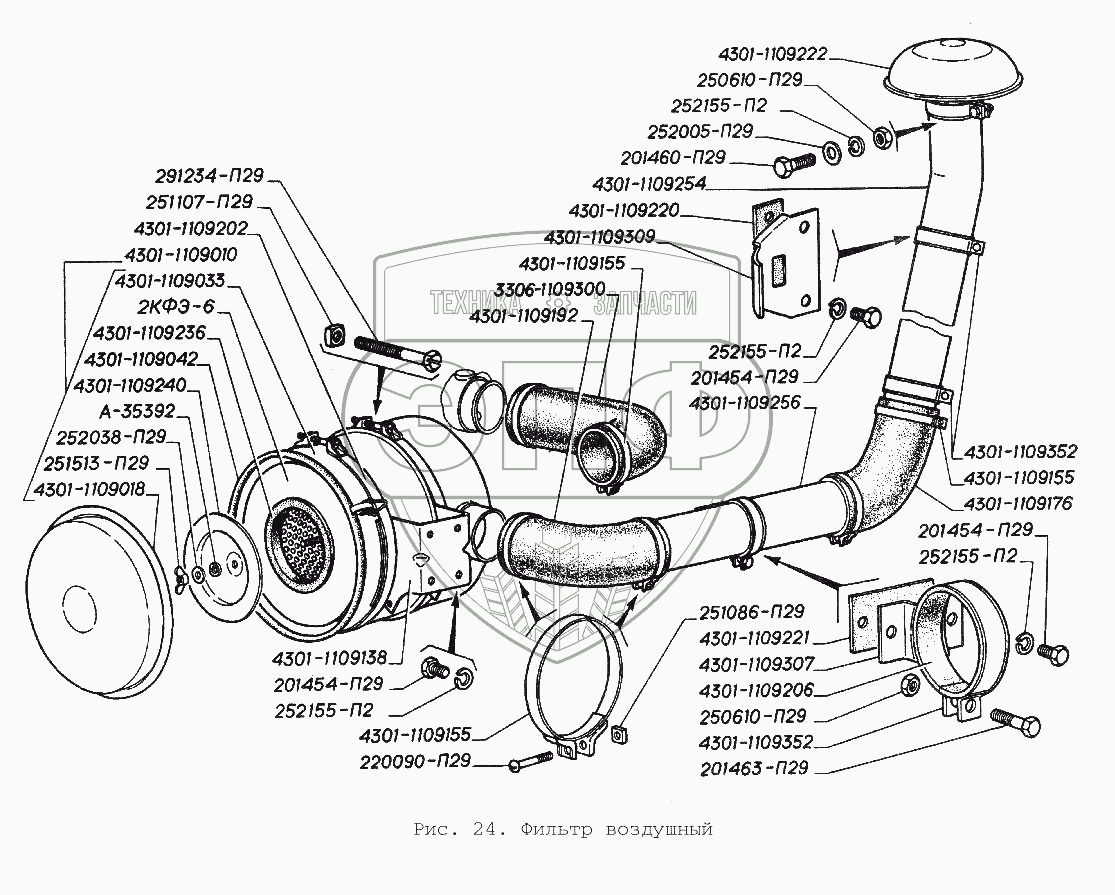 Каталог запасных частей к технике: ГАЗ-3306. Фильтр воздушный