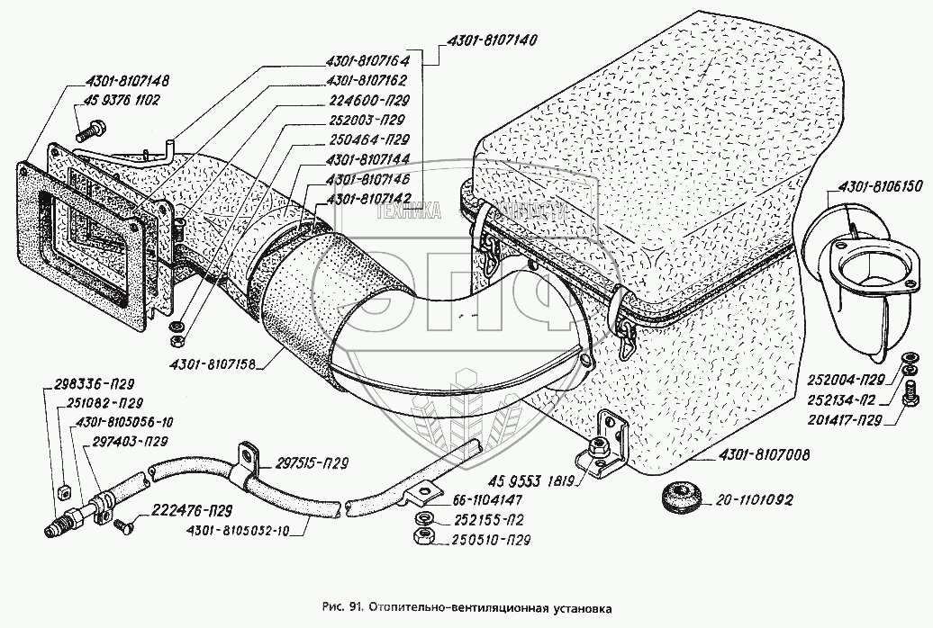 Каталог запасных частей к технике: ГАЗ-3306. Отопительно-вентиляционная установка