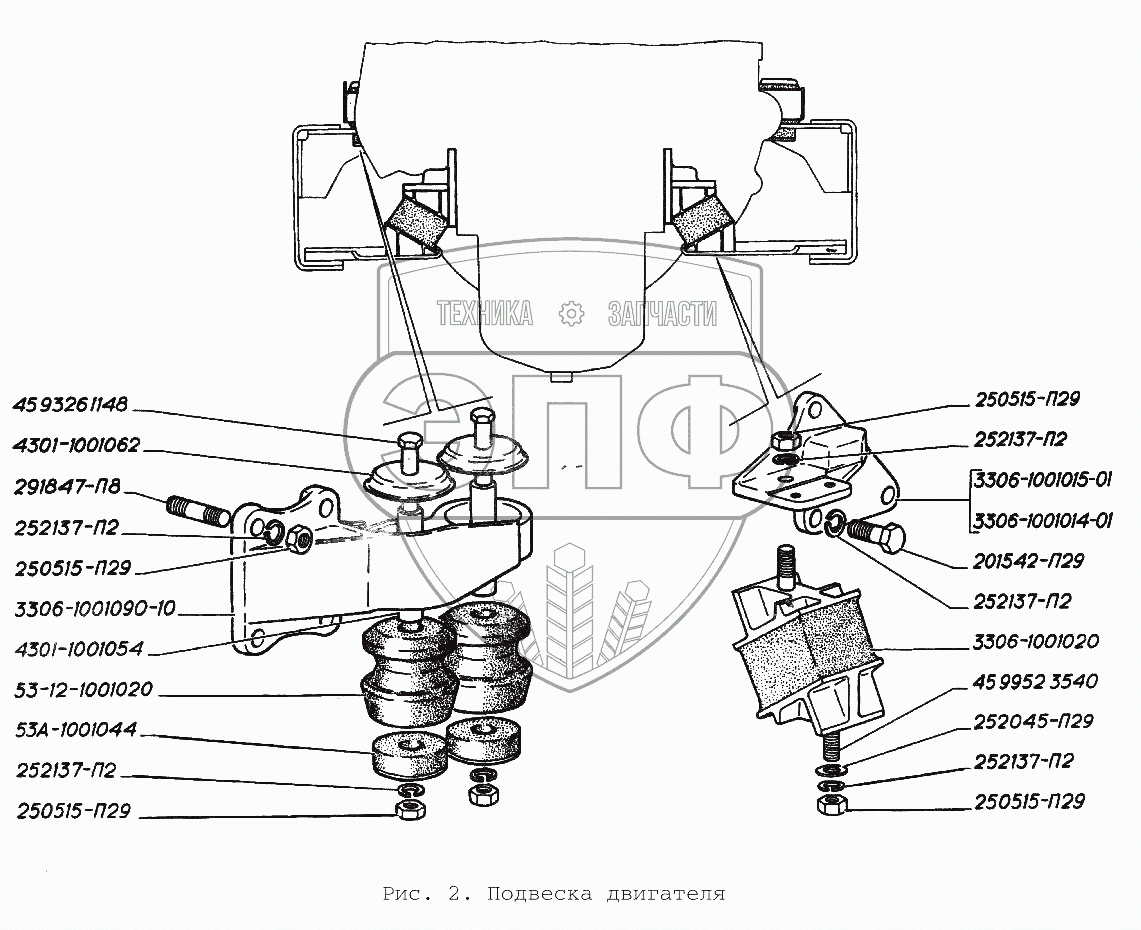 Каталог запасных частей к технике: ГАЗ-3306. Подвеска двигателя