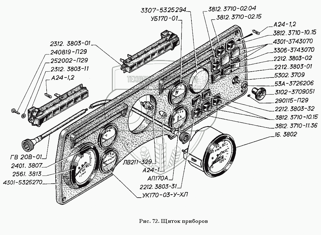 Каталог запасных частей к технике: ГАЗ-3306. Щиток приборов
