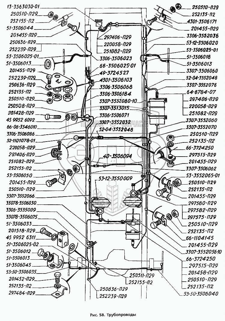 Каталог запасных частей к технике: ГАЗ-3306. Трубопроводы