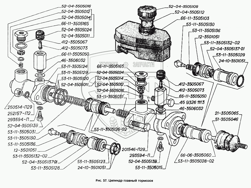 Каталог запасных частей к технике: ГАЗ-3306. Цилиндр главный тормозов