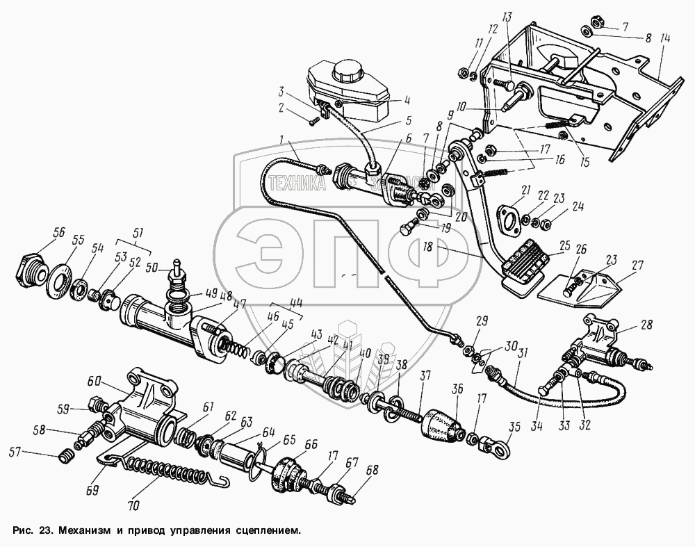 Каталог запасных частей к технике: ГАЗ-3307. Механизм и привод управления сцеплением