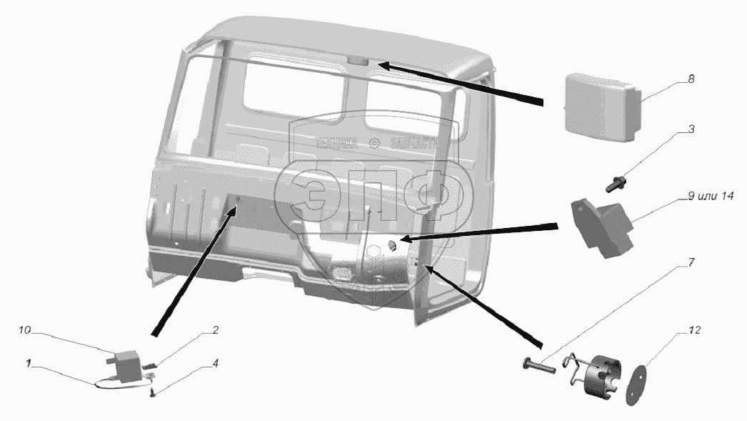 Каталог запасных частей к технике: ГАЗ-33081. 33081-3714002. Установка внутреннего освещения