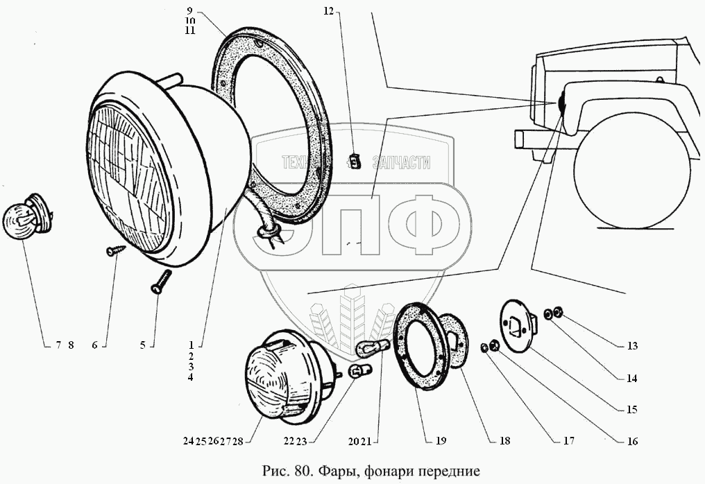 Каталог запасных частей к технике: ГАЗ-3308. Фары, фонари передние