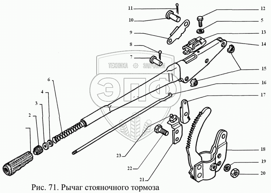Каталог запасных частей к технике: ГАЗ-3308. Рычаг стояночного тормоза