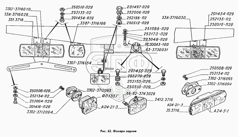 Каталог запасных частей к технике: ГАЗ-3309. Фонари задние