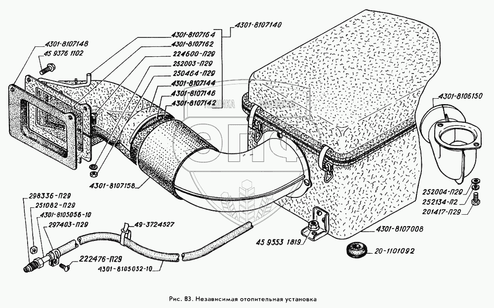 Каталог запасных частей к технике: ГАЗ-3309. Независимая отопительная установка
