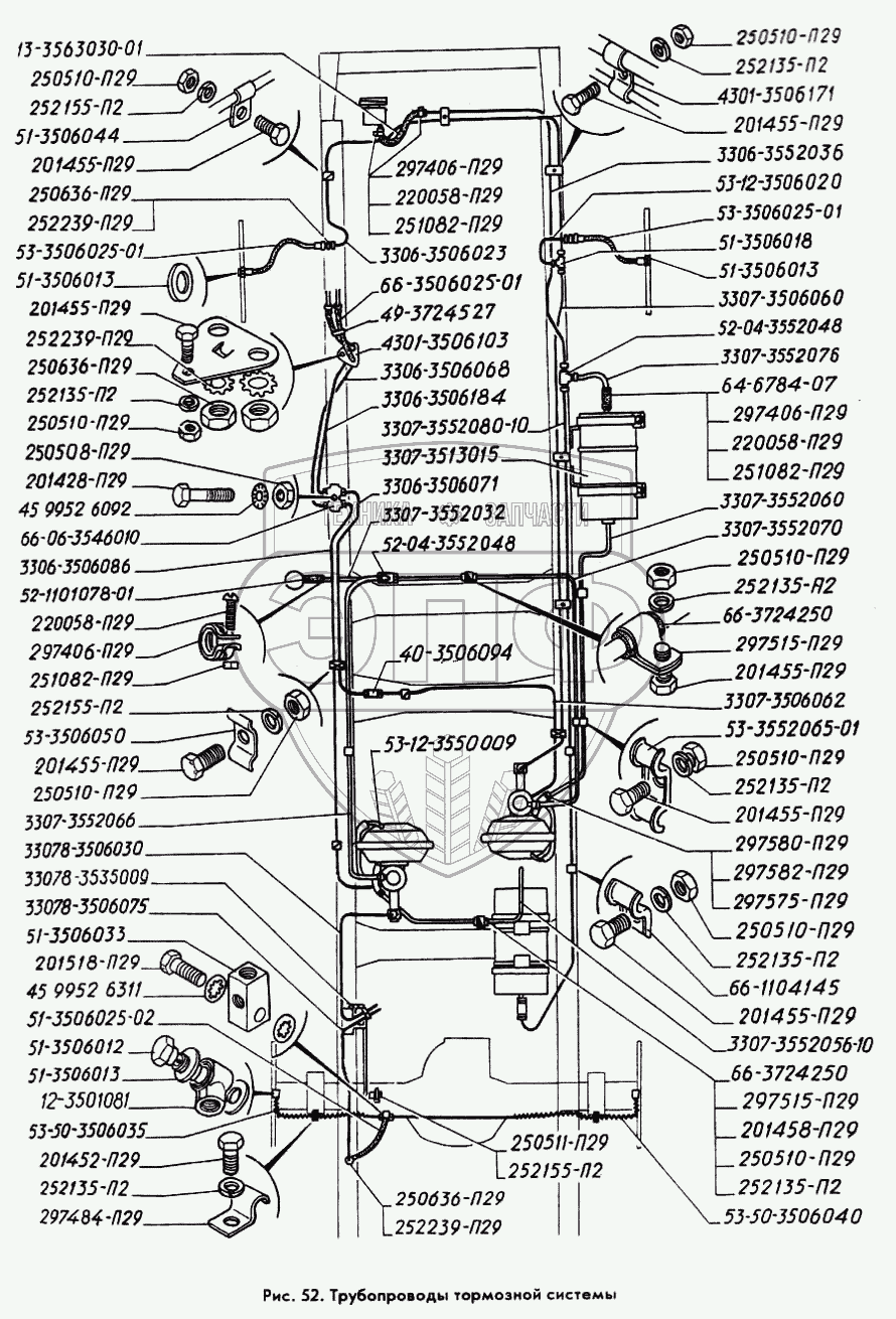 Каталог запасных частей к технике: ГАЗ-3309. Трубопроводы тормозной системы
