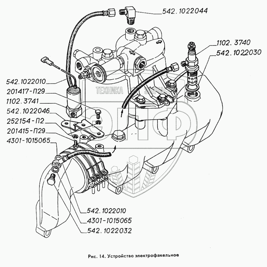 Каталог запасных частей к технике: ГАЗ-3309. Устройство электрофакельное