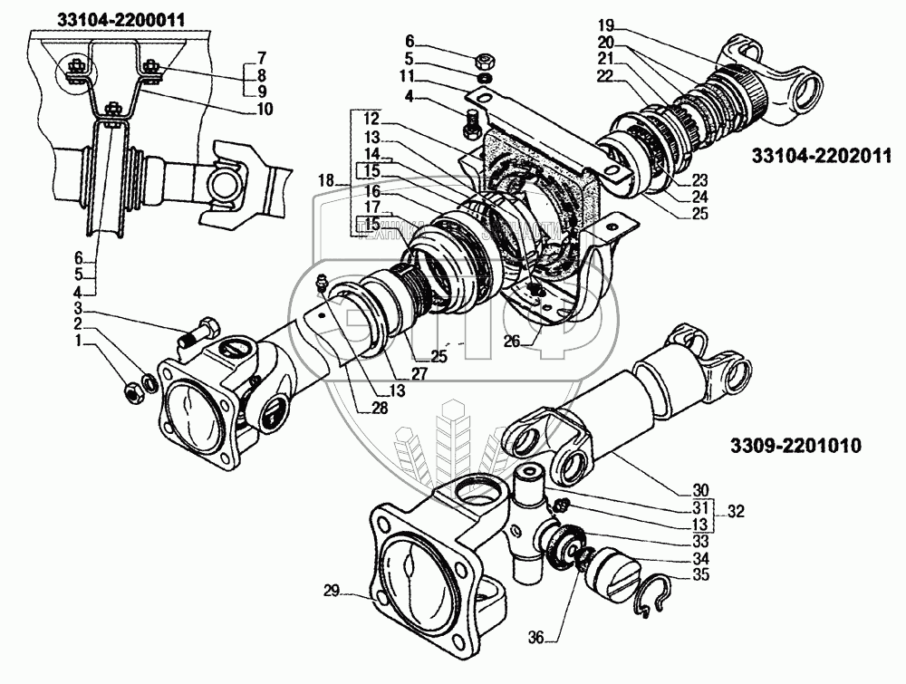 Каталог запасных частей к технике: ГАЗ-33104 Валдай. Карданные валы