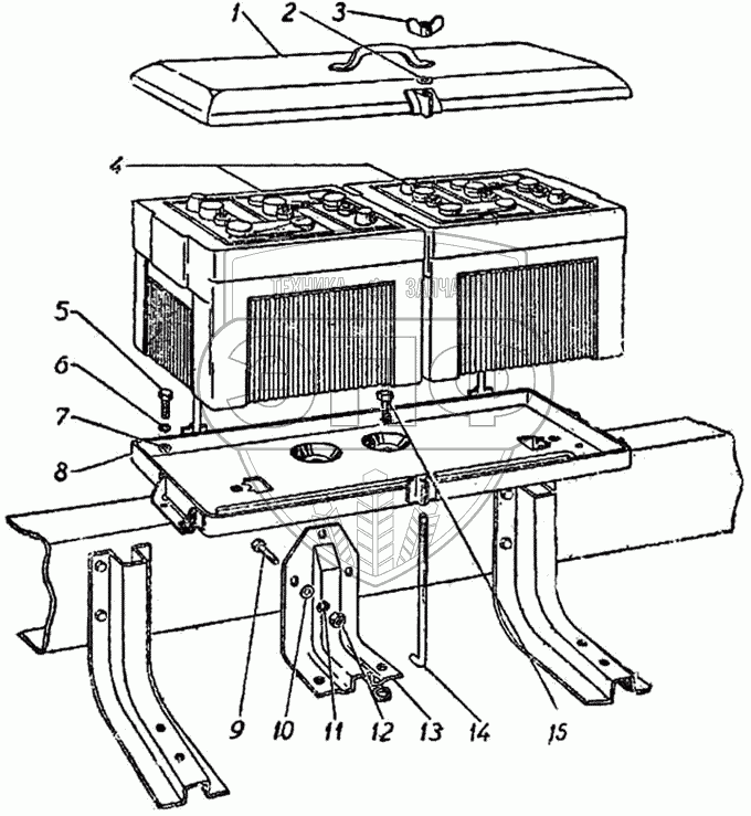 | 1 | 51-3703035-Б | Крышка крепления аккумуляторной батареи в сборе | Нет на складе | |