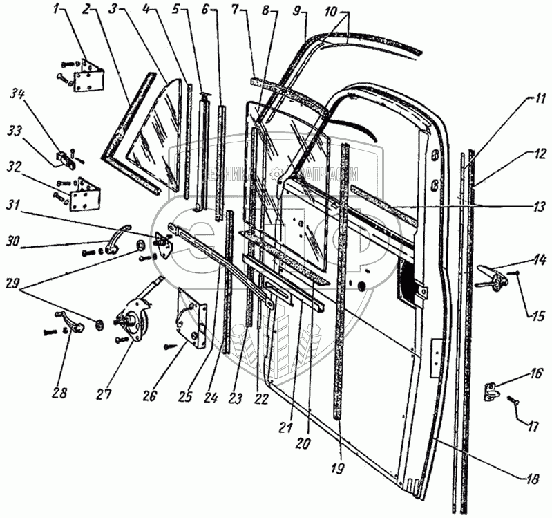 Каталог запасных частей к технике: ГАЗ-51 (63, 63А). Дверь