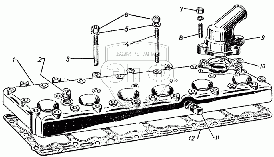 | 9 | 12-1003060 | Патрубок выпускной водяной рубашки цилиндров | Нет на складе | |