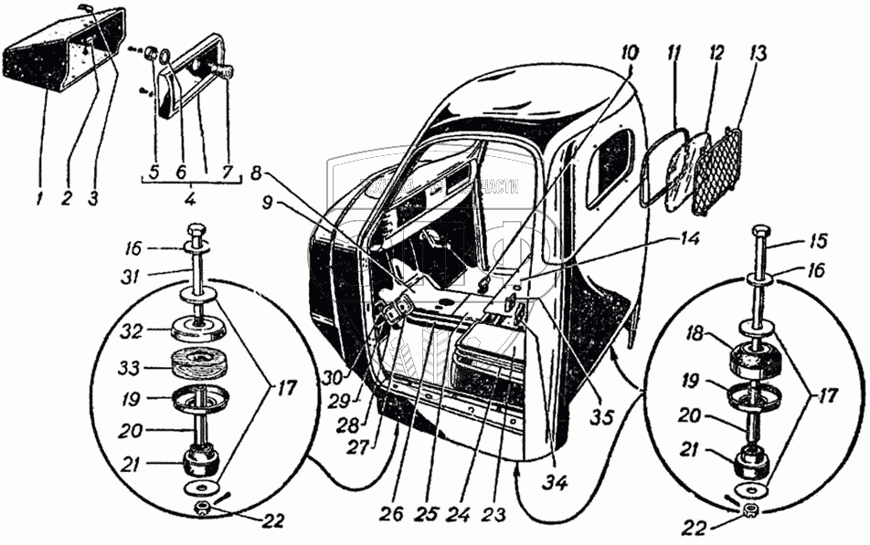 | 19 | 15-6041 | Чашка верхней подушки бокового и заднего крепления кабины к раме | Нет на складе | |