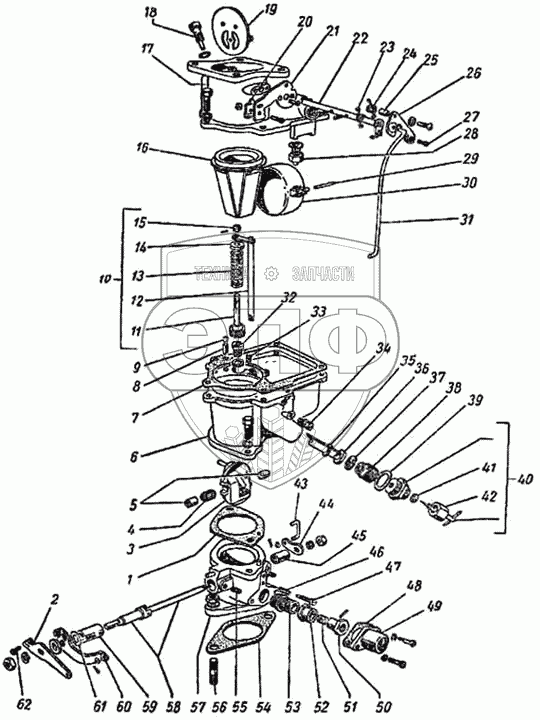 Каталог запасных частей к технике: ГАЗ-51 (63, 63А). Карбюратор К22Г
