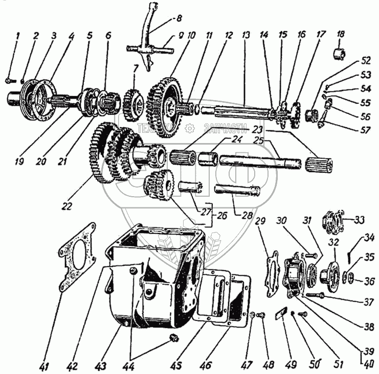 Каталог запасных частей к технике: ГАЗ-51 (63, 63А). Коробка передач