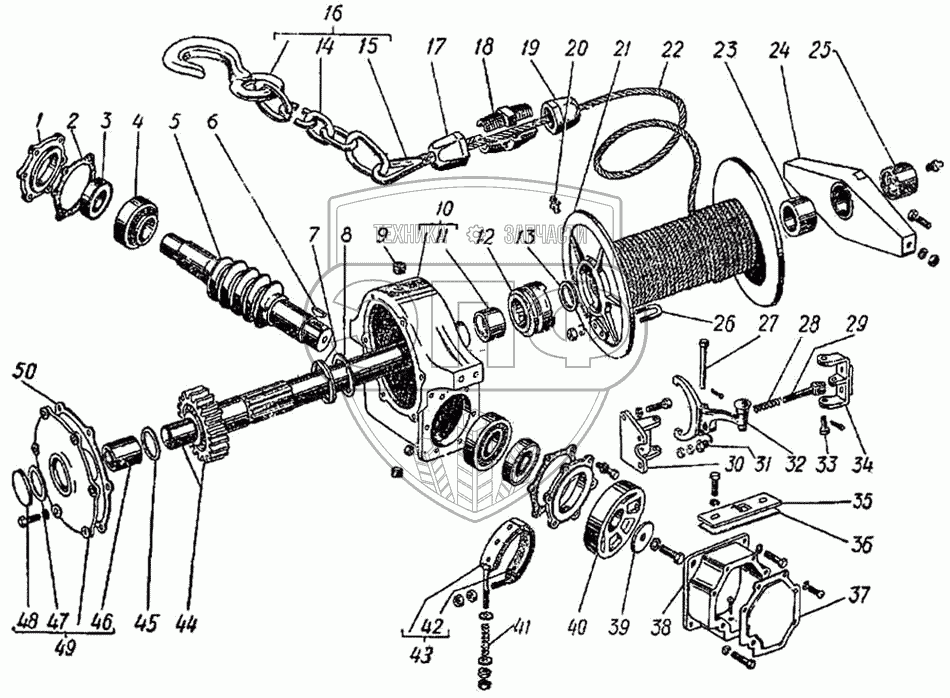 Каталог запасных частей к технике: ГАЗ-51 (63, 63А). Лебедка