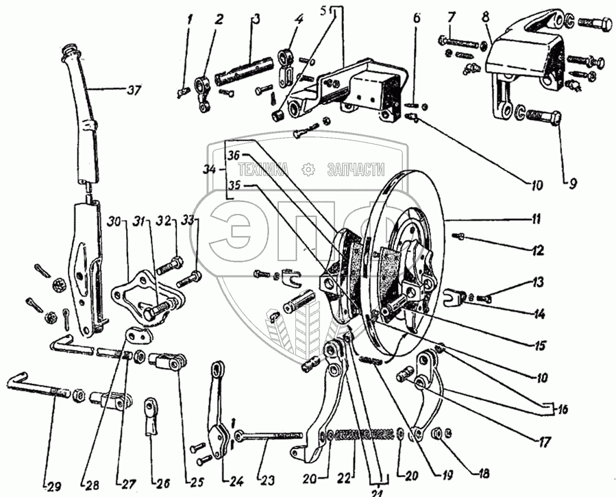 Каталог запасных частей к технике: ГАЗ-51 (63, 63А). Ручной тормоз