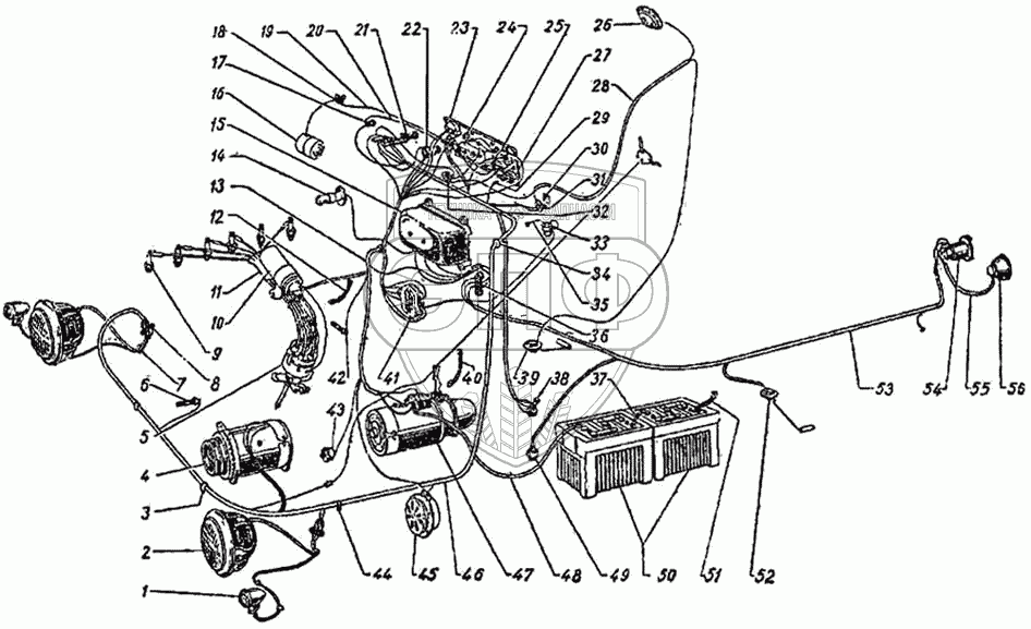 Каталог запасных частей к технике: ГАЗ-51 (63, 63А). Схема электрооборудования