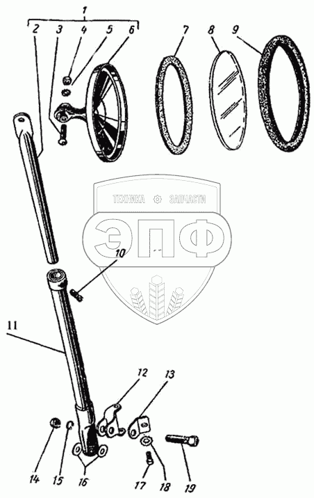 Каталог запасных частей к технике: ГАЗ-51 (63, 63А). Зеркало заднего вида