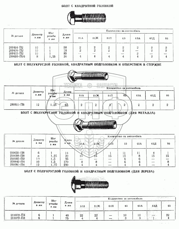 Каталог запасных частей к технике: ГАЗ-51 (63, 93). Болты