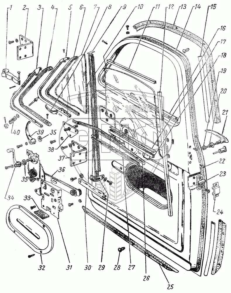 Каталог запасных частей к технике: ГАЗ-51 (63, 93). Дверь, сиденье водителя