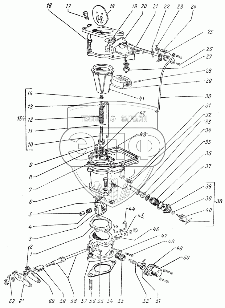 Каталог запасных частей к технике: ГАЗ-51 (63, 93). Карбюратор КГ22Г