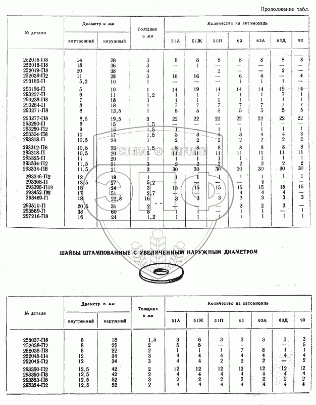 Каталог запасных частей к технике: ГАЗ-51 (63, 93). Шайбы