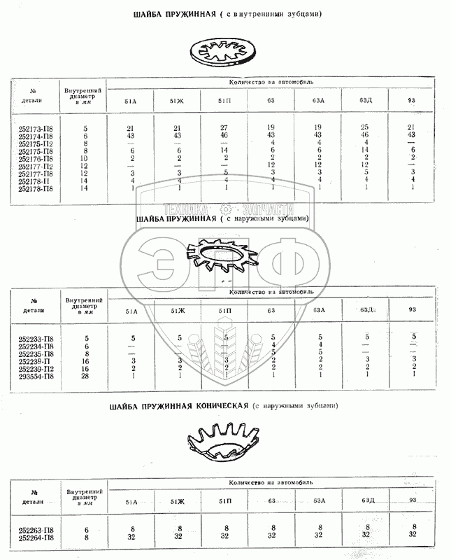 Каталог запасных частей к технике: ГАЗ-51 (63, 93). Шайбы