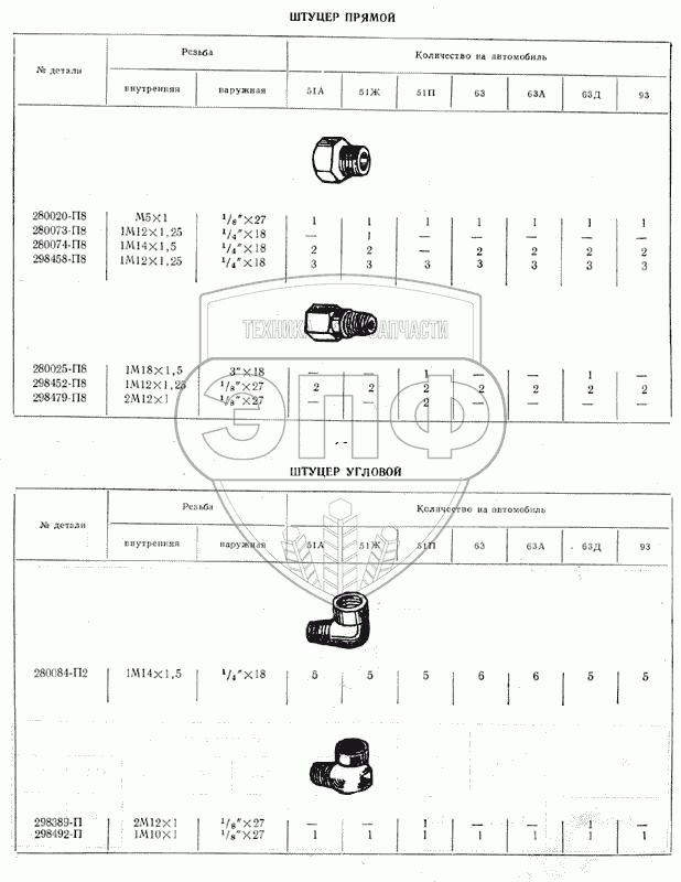 Каталог запасных частей к технике: ГАЗ-51 (63, 93). Штуцеры