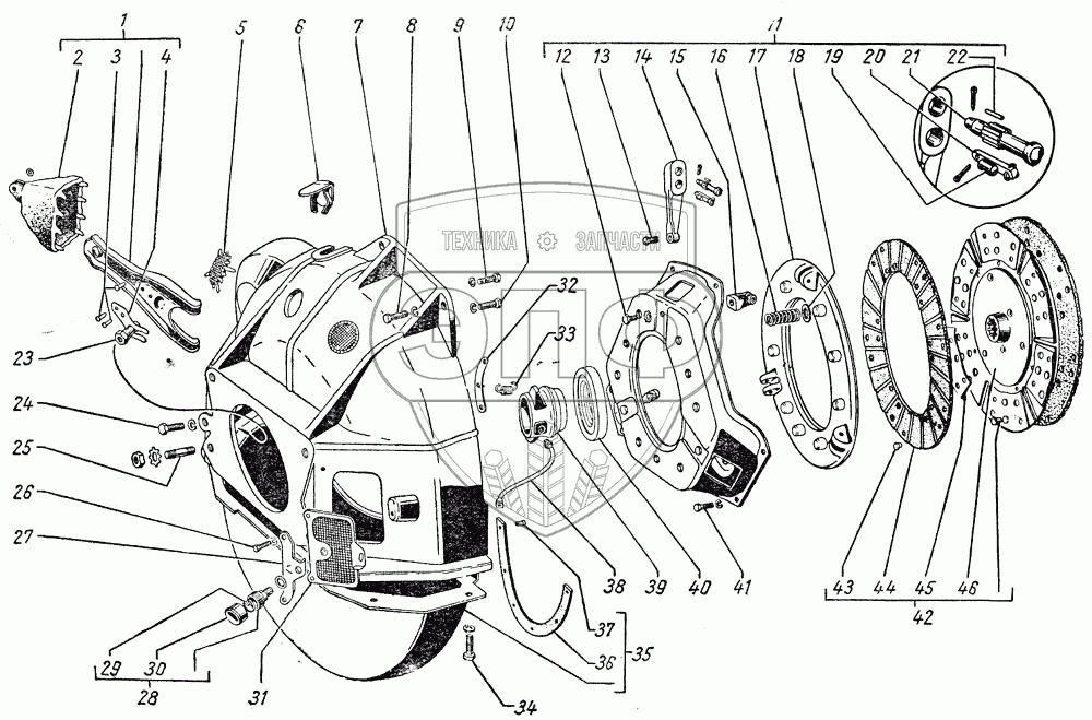 Каталог запасных частей к технике: ГАЗ-51 (63, 93). Сцепление