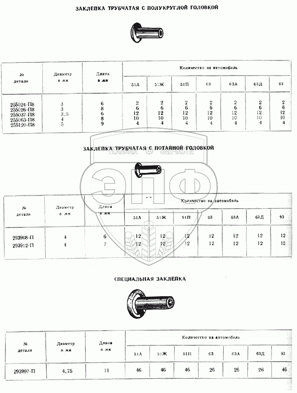 Каталог запасных частей к технике: ГАЗ-51 (63, 93). Заклепки