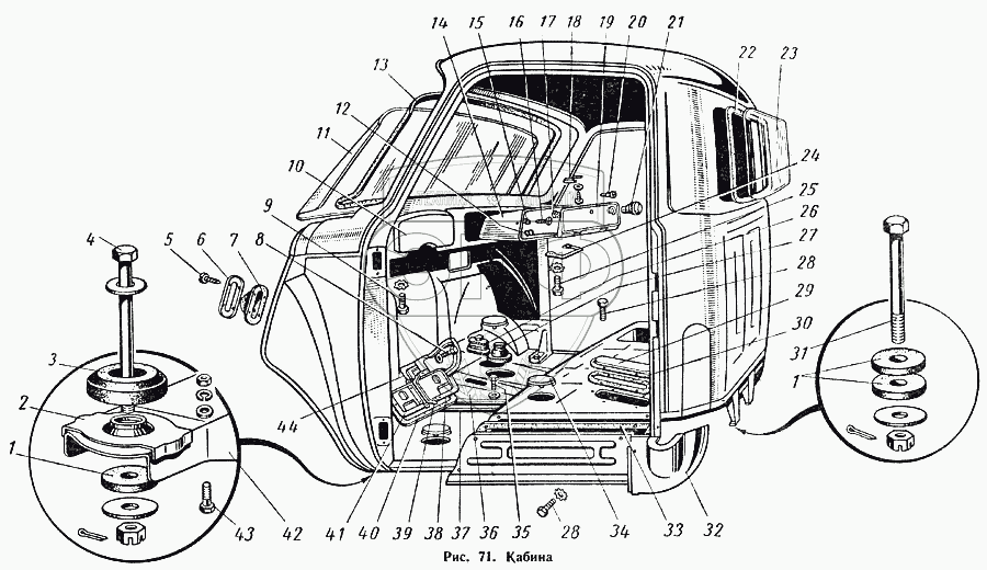 Каталог запасных частей к технике: ГАЗ-52-01. Кабина