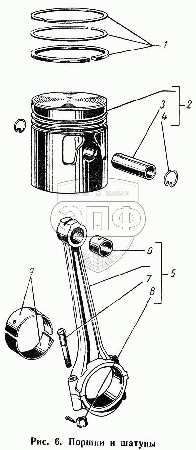 | 5 | 51-1004046 | Шатун в сборе (второго, четвертого и шестого цилиндров) | Нет на складе | |